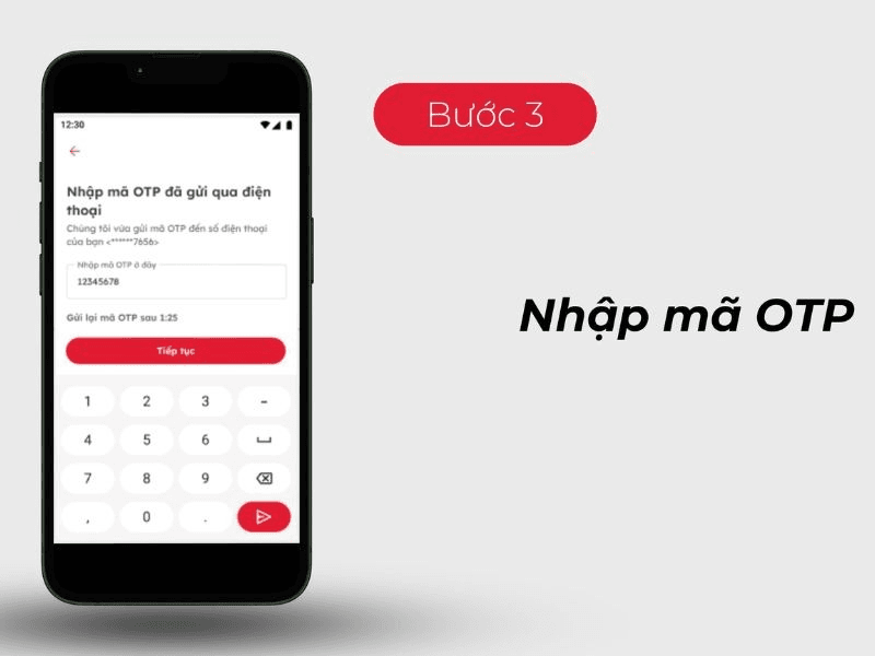 • Bước 3: Nhập mã OTP được gửi về điện thoại