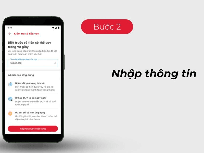 • Bước 2: Nhập các thông tin về họ tên, số điện thoại, thu nhập (nếu có) theo yêu cầu của hệ thống